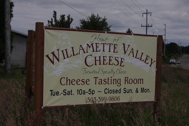 I stopped here on Friday for a taste of the famous Willamette Valley Cheese right here at the factory. I walk in and the lady says we have no tasting today because we are short workers who are setting up for the weekend farmers markets in Salem and Portland. (doesn't this happen every week anyway?)